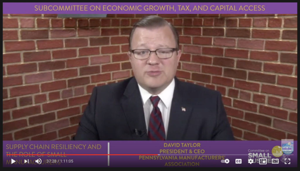 Chairwoman Davids, Ranking Member Meuser, and members of the subcommittee, thank you for the privilege of testifying today. I am David N. Taylor and I serve as President & CEO of the Pennsylvania Manufacturers’ Association, which is the statewide non-profit organization representing the manufacturing sector in our state’s public policy process. PMA is the official state partner of the National Association of Manufacturers, and I also work with my colleagues from across the country as a member of the executive committee of the Conference of State Manufacturers Associations.