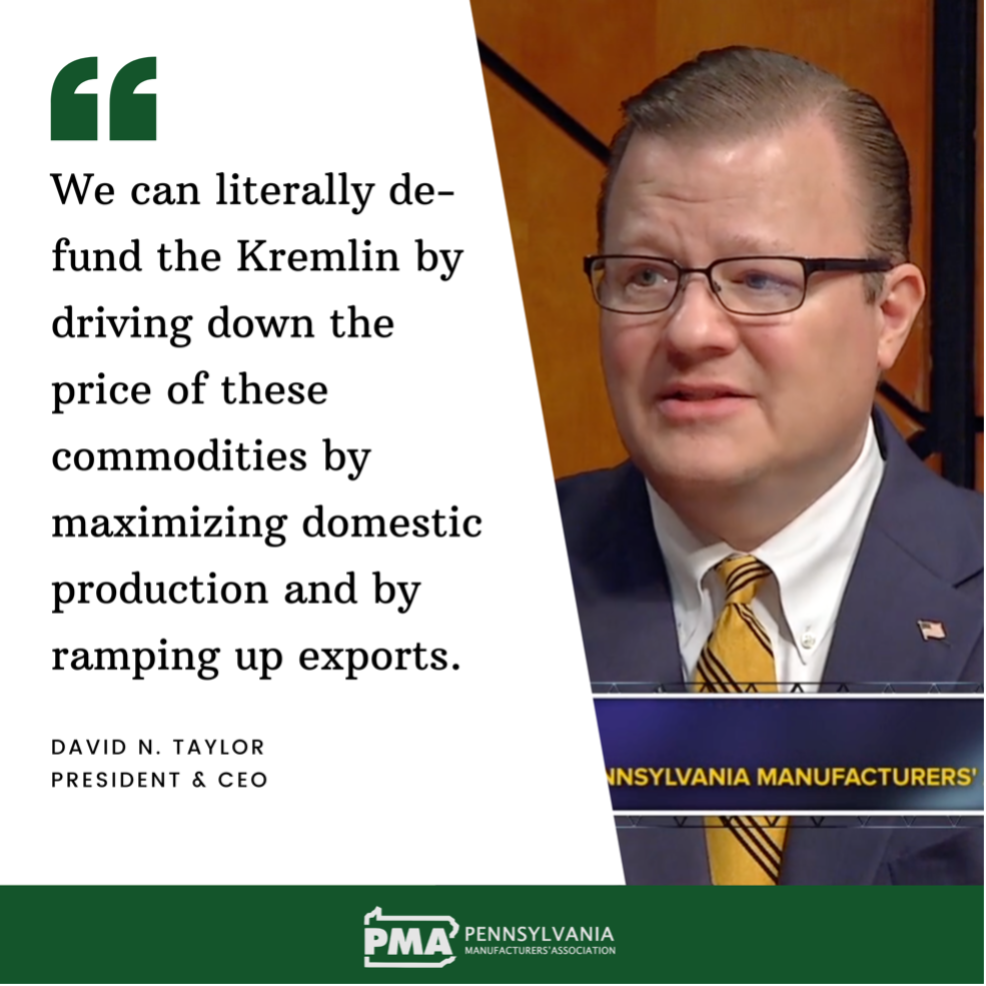 “Energy security is national security,” said PMA President & CEO David N. Taylor. “America must return to energy independence and Pennsylvania should play a pivotal role in making that happen. Maximizing domestic production, building out energy infrastructure, and increasing export capacity can put America on the offensive. Because the Russian economy depends on the cash derived from energy sales, we can literally de-fund the Kremlin by driving down the price of these commodities by maximizing domestic production and ramping up exports.”